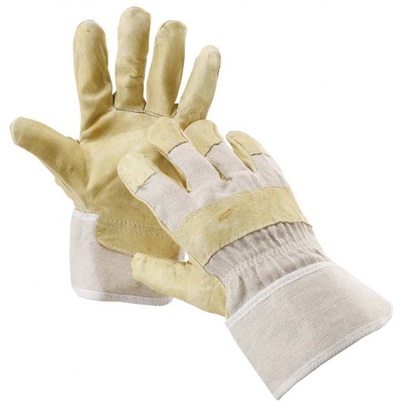 Rukavice z vepřové lícovky v dlani s podšívkou a z bavlněné tkaniny na hřbetu a manžetě.