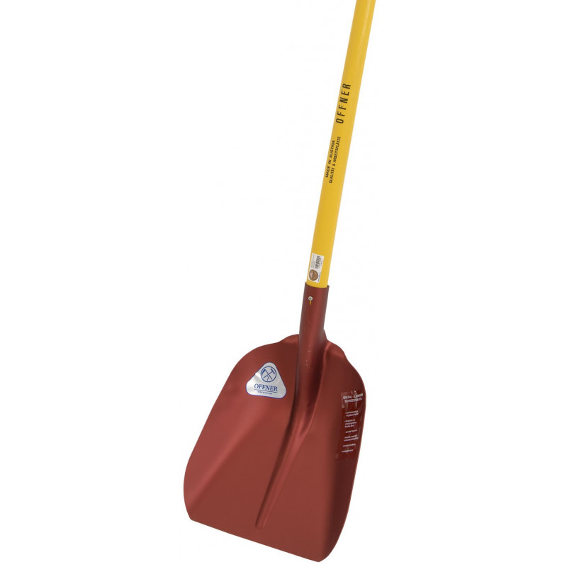 - hliníková univerzální lopata Offner se žlutou dřevěnou rukojetí je vyrobena z tvrzeného hliníku