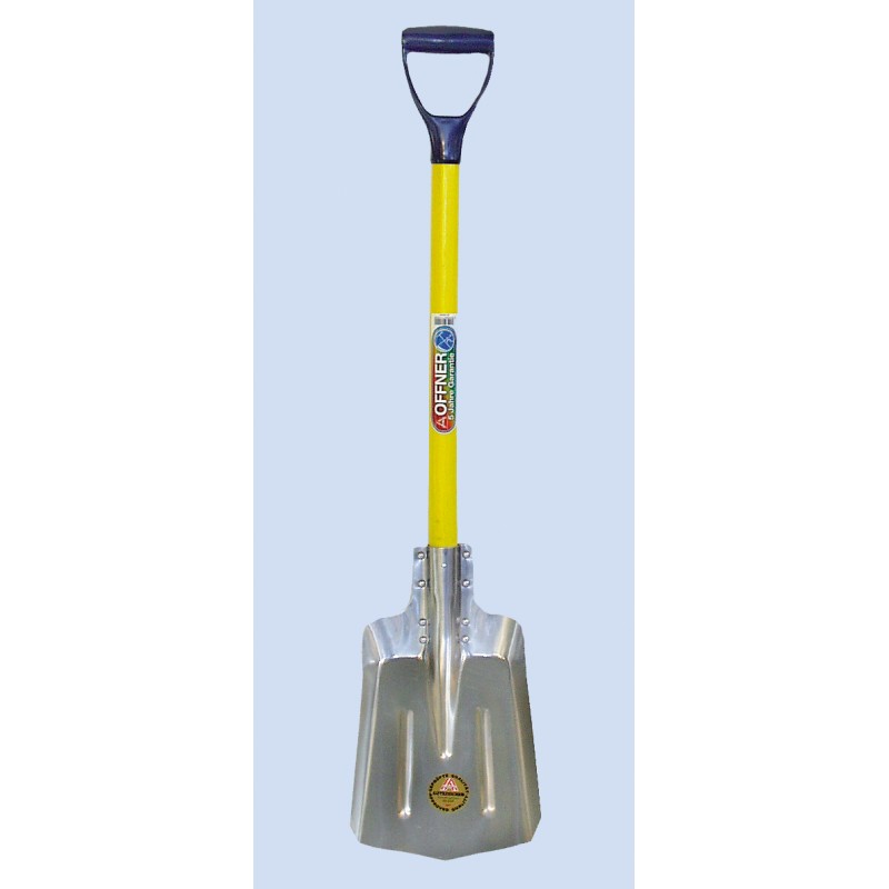 Lopata do auta Offner má 75 cm dlouhou žlutě natřenou dřevěnou rukojeť s plastovou rukojetí D